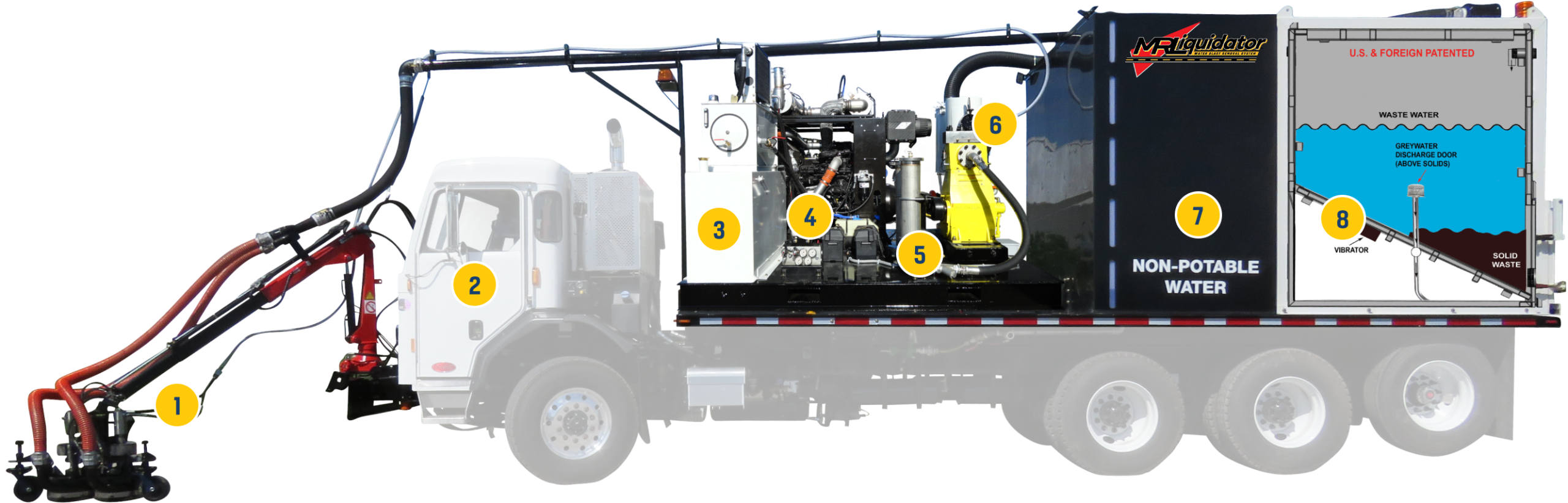 The Liquidator system is by far the most economical water-blast runway and pavement markings removal system on the market today. Both new and used units offer huge savings compared to the competition, with superior performance results.